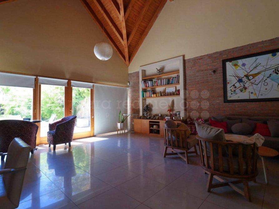 Toda la casa ha sido construida en planta baja, lo que le brinda una comodidad única. Al ingresar, encontrará una hermosa recepción que conecta con un amplio y luminoso living, perfecto para disfrutar de momentos de relax o recibir visitas. El comedor independiente ofrece una vista directa al jardín parquizado, creando un ambiente sereno y natural.
