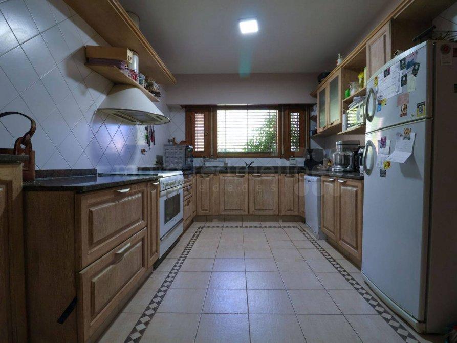La cocina amplia está equipada con bacha y grifería Johnson, además de contar con un depósito y cuarto de servicio, lo que optimiza el espacio y la funcionalidad de la propiedad.