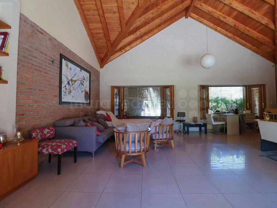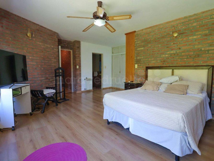 Los dormitorios están revestidos con pisos flotantes de excelente calidad, mientras que los techos de la vivienda están hechos de Pino Oregon, un detalle que destaca la solidez y la alta calidad constructiva de la propiedad.